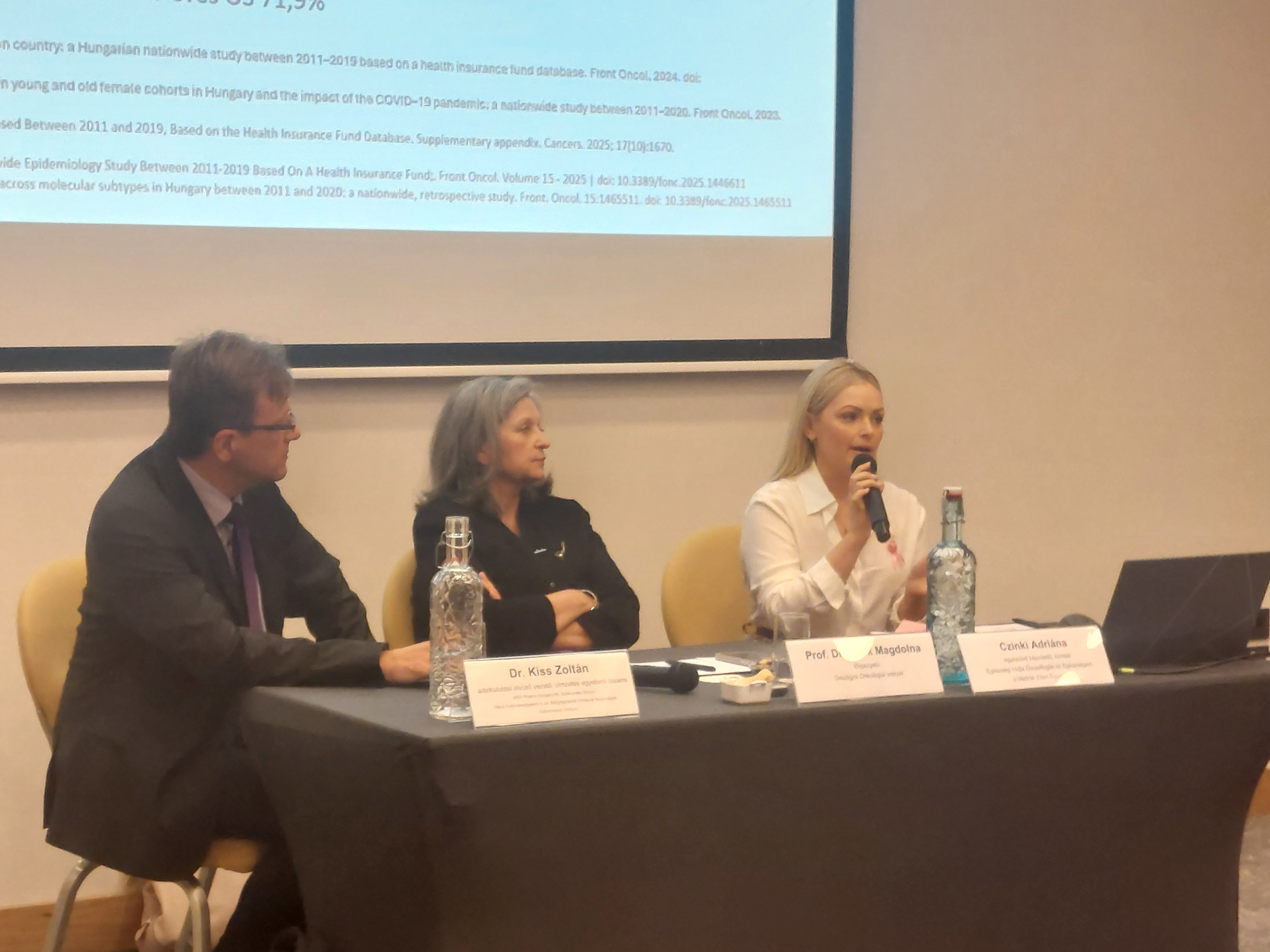 „Saját példám mutatta meg, hogy soha nem lehetsz túl fiatal a mellrákhoz” – fogalmazott Czinki Adriána, az Egészség Hídja Egyesület képviselője, akit nyolc évvel ezelőtt, 26 éves korában diagnosztizáltak tripla negatív mellrákkal. Hozzátette: betegszervezeti munkájában is prioritás a fiatal nők érzékenyítése és a személyes rizikótényezők korai megismertetése. „Több korai diagnózis születne, és még többen gyógyulhatnának meg, ha családi beszédtéma lenne a mellrák, és a lányok már a húszas éveikben tisztában lennének a betegséggel, az addig esetleg nem ismert családi kockázatokkal és az önvizsgálat fontosságával.”